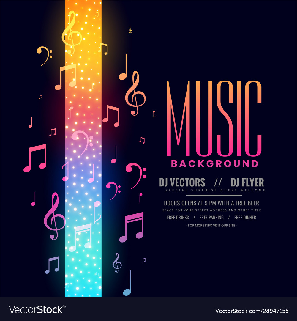 Colorful Music Flyer Party Background With Notes Vector Image - Hi resolution grunge background brushes.