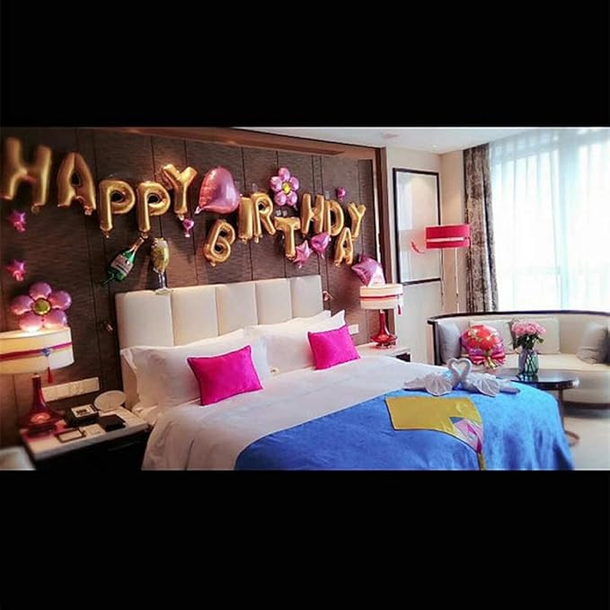 Hnhx Romantic Birthday Surprise Decoration Golden Balloon Package Decoration Room Decoration Birthday Party Embellishment Amazon Co Uk Kitchen Home - Room decoration for birthday bedroom ideas romantic bathrooms romantic room surprise romantic birthday.